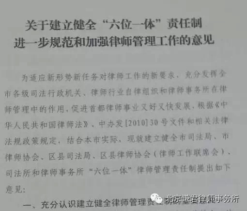 六位一体的体制的提出,是对加强律师和律所管理的高标准的要求,希望律师群体能够成为社会的精英团队,为社会主义法律建设,推进依法治国发挥更好作用打好坚实的基础。