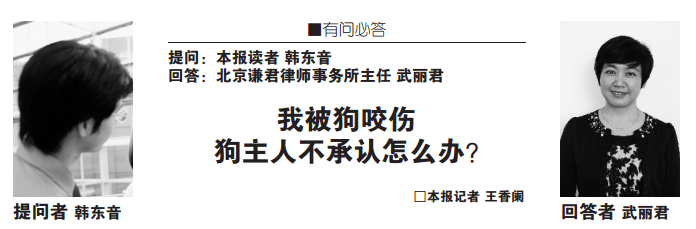 韩东音:我今年28岁,是从福建来到北京的打工者。今年7月初,我趁周日休息时去郊区看老乡,路过一个加工厂时,一只大狗从门口窜出来把我咬伤,一位保安闻讯出来把我送到医院,借口去银行取钱交费一去未回。我打狂犬疫苗花了几百元钱,找到那家加工厂老板让他赔付时,他矢口否认,说他的厂里没有狗。打听后才知道咬伤我的那只狗已经被老板卖了,而那位保安也被辞退。请问:我现在该怎么办?