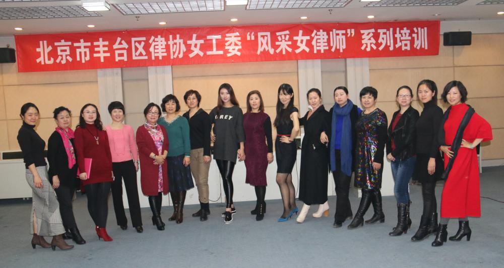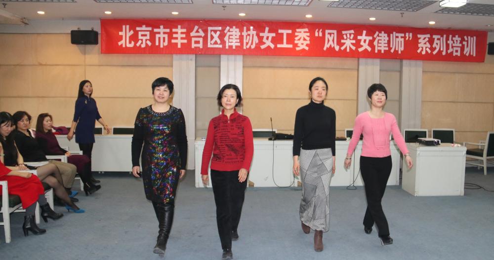 2016年1月16日下午,在北京市丰台律协会长副会长的大力支持下,由北京市丰台区律协女工委副主任、北京谦君律师事务所主任武丽君组织安排《北京市丰台区律协女工委“风采女律师”系列培训》之形象管理《形体和礼仪》,聘请参加过世界模特大赛并取得多项比赛冠军的专家名模贾子君老师授课,丰台女律师二十余人参加活动。