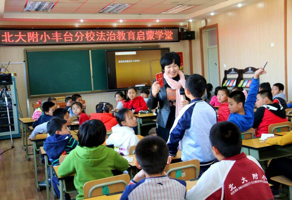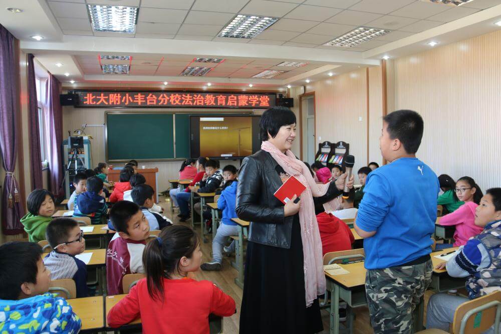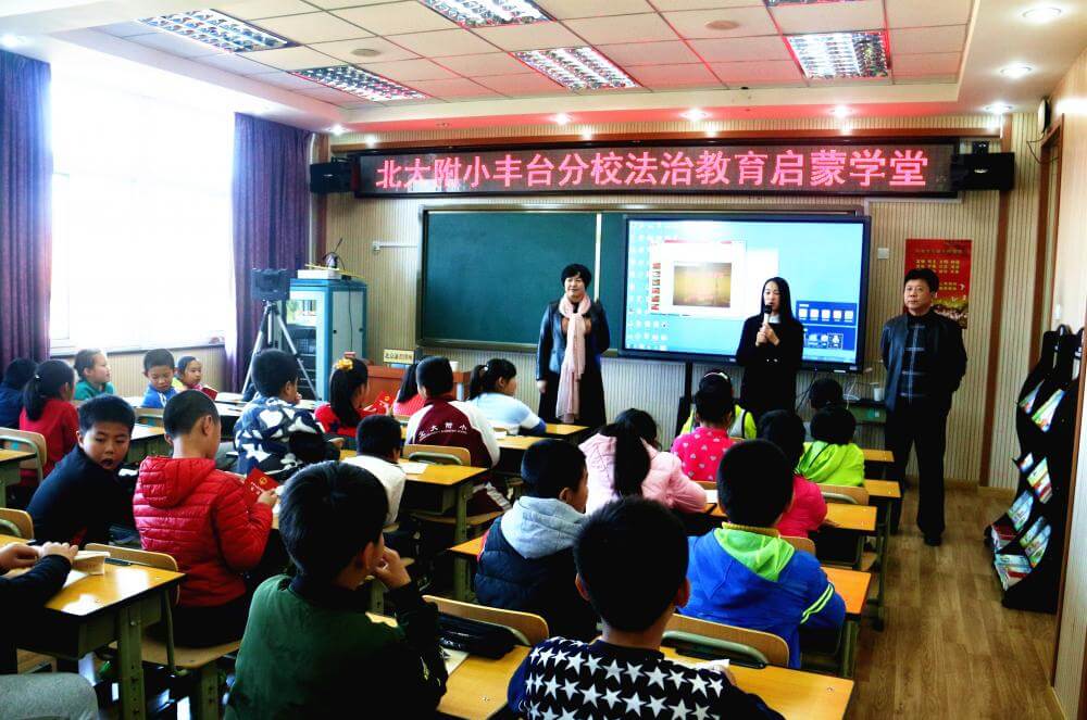 武丽君主任激动的表示:“孩子们对法律的渴望和敬畏之心,深深的打动着我们律师。作为律师和孩子们在一起是一种极大的快乐,让法律早日播撒在孩子们幼小的心田,是我们律师的最大心愿。为培养新一代尊法守纪的青少年,心中始终充满着希望和力量。中国的法治教育就应该从小学生抓起。只有这样,我国的未成年人犯罪几率才会极大下降,未成年受伤害的几率也会极大降低。我们律所可以与北大附小丰台分校建立共建关系,最大程度地做好学生们的法治教育,为师生及时提供法律帮助和法律援助,用法律武器保护校园净土不受污染,守护祖国的未来茁壮成长”!