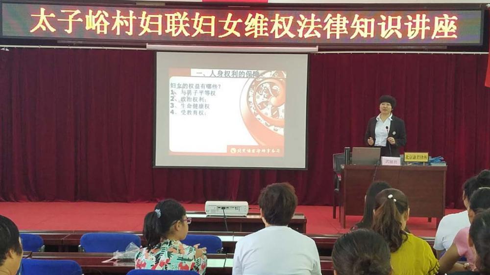 武丽君主任为更好的实现法律知识讲座效果,结合经典案例专门制作了精美的PPT,从妇女人身权利保障、婚姻家庭权益保障和财产权利保障三方面,结合案例为太子峪妇女讲解妇女维权的重要意义,更重要的是讲授妇女维权的方式方法,让妇女们可以学以致用。讲座尾声,各位与会听众与武主任积极互动,咨询相关法律问题,武主任给予认真细致解答,讲座现场气氛热烈。