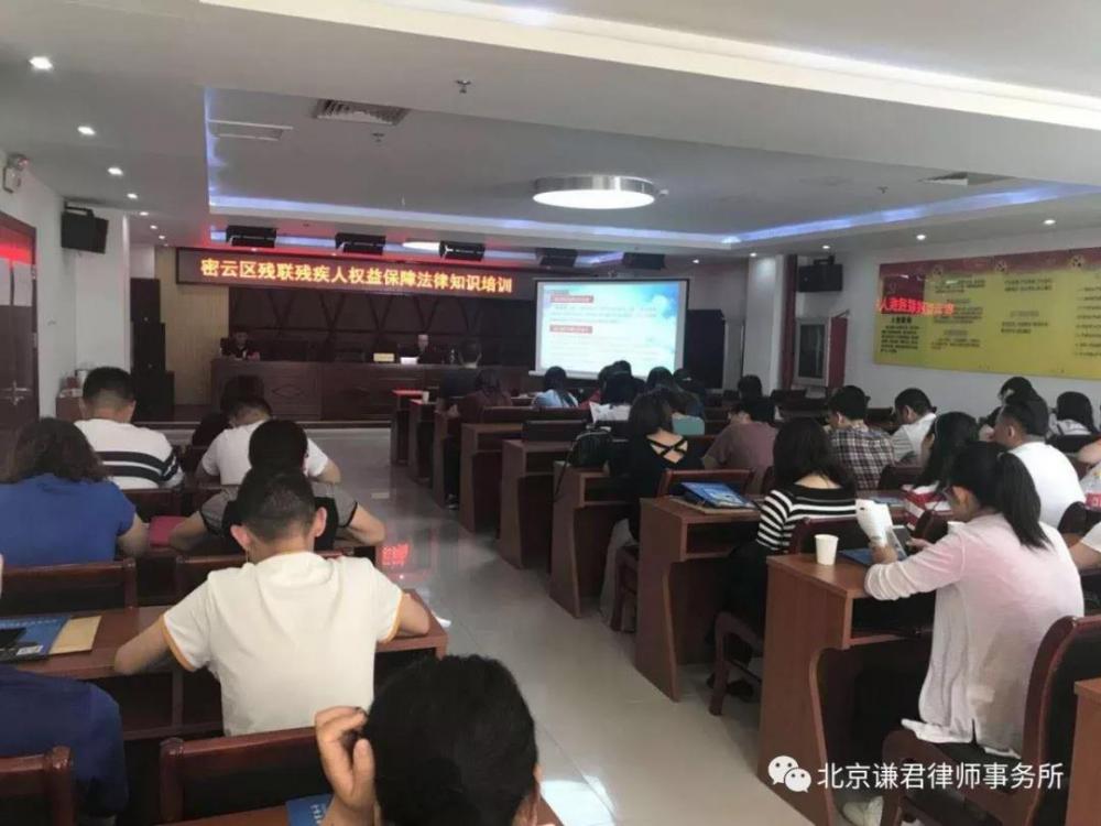 北京谦君律师事务所承接2018年北京市残疾人工作者法律与政策宣讲任务,活动正如火如荼有序推进,本周恰逢第28次全国助残日,讲座在全市集中开讲。武丽君主任,陈榕金律师,蔚东律师等分别在海淀区、昌平区、丰台区、密云区举行了四场讲座,内容涉及宪法修正案、解读十九大精神、残疾人权益、残疾人预防与康复等多个主题。