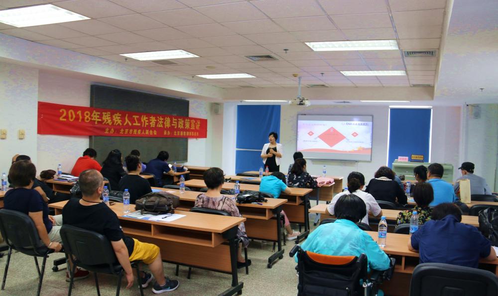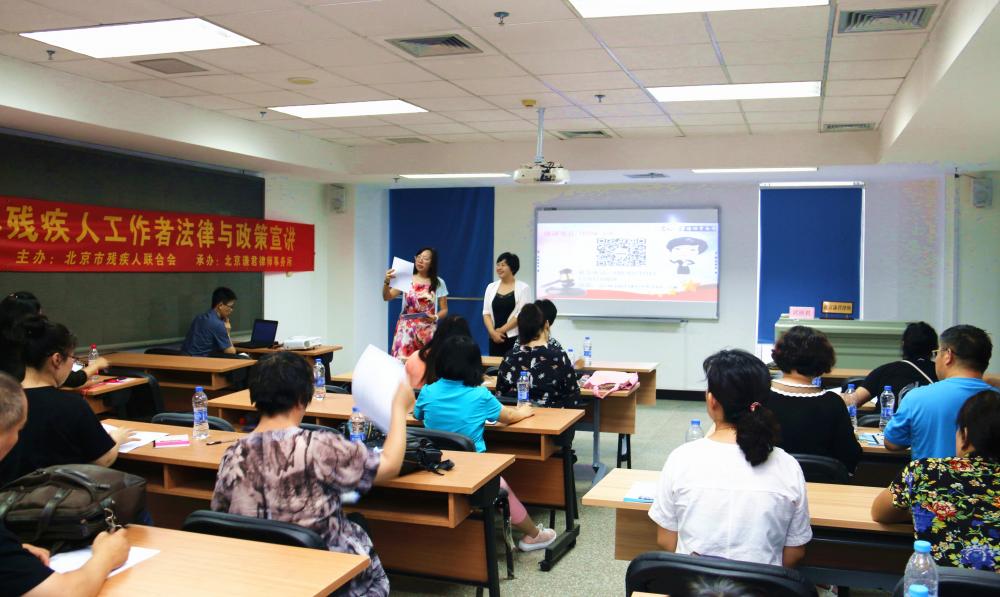 近日京城普降暴雨,谦君律师普法助残风雨兼程。本周内,武丽君主任、陈榕金律师分别来到市残联、东城、西城两区残联和窦志联为近300名残疾人工作者及残疾人代表开展了四场法律知识讲座,发放普法资料近400份,普法凉扇近400把,解答咨询10余人次。北京市电视台经济频道张晓墨记者对武丽君主任在窦志联的普法助残活动进行了专题采访。
