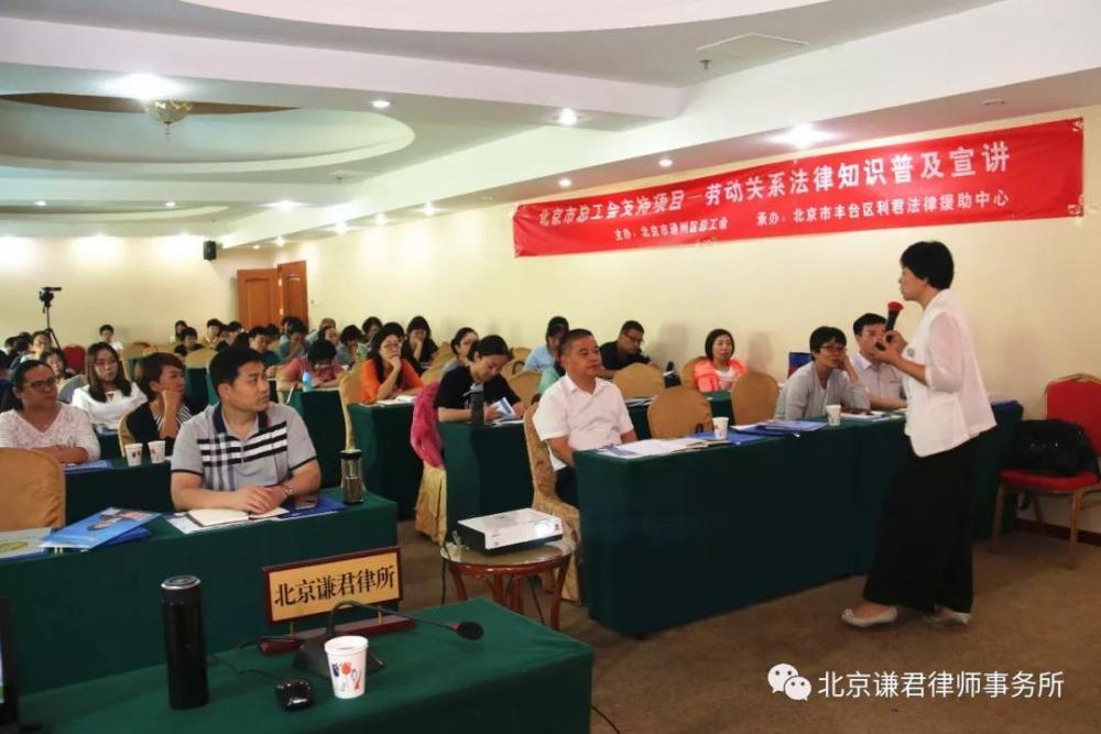 8月30日,北京谦君律师事务所武丽君主任一行前往通州区总工会为近百名工会机关负责人、企业工会负责人、企业人力资源主管开展了劳动关系法律知识讲座。会议由通州区总工会权益部王亚军副部长主持,权益部张国宽部长参加了此次讲座活动。