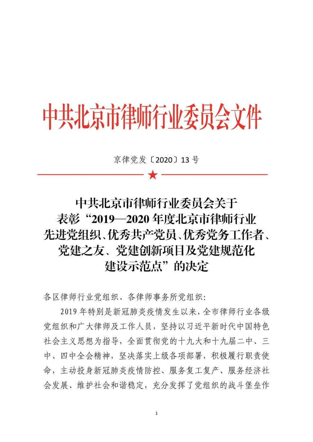 会议全面总结了过去一年特别是抗击疫情阻击战以来,服务各级政府依法决策、满足人民群众法律服务需求、服务企业复工复产、服务经济社会发展、维护社会安全稳定等方面所做的工作。对“2019—2020年度北京市律师行业先进党组织、优秀共产党员、优秀党务工作者、党建之友、党建创新项目及党建规范化建设示范点”进行了表彰。北京谦君律师事务所主任武丽君同志荣获“2019--2020年度北京市律师行业优秀共产党员”荣誉称号。