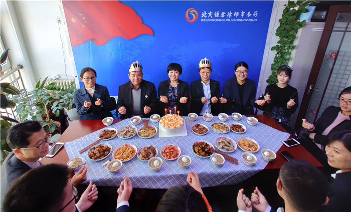 今天,是二十四节气中的霜降节气,微风拂面,寒气袭人,可谦君律所的小餐厅却温暖如春。武丽君主任率全体小伙伴们为李楠和曹洪琪两位同事举办了一场热情洋溢的生日宴。