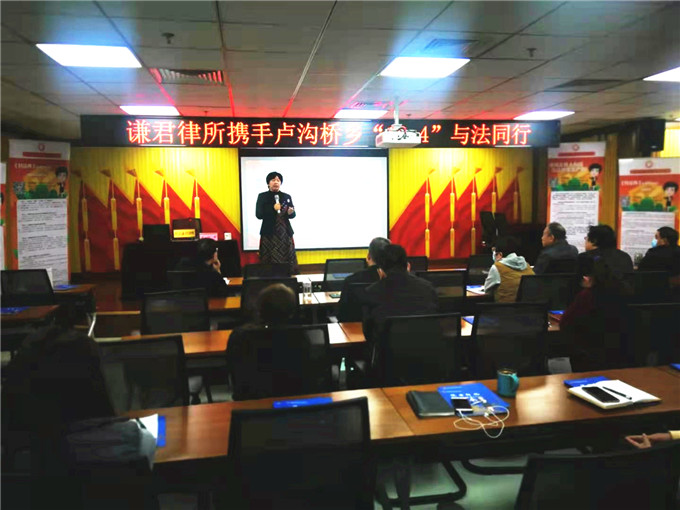 11月17、24日,谦君律师来到卢沟桥乡和卢沟桥街道社区,就社区居民普遍关心的离婚纠纷、财产继承、老人赡养等法律问题,根据新颁布的民法典相关规定,武丽君主任结合自身办案经历进行了具体讲解,现场回答了多名机关干部及居民的法律咨询。谦君律师定期进社区、进家庭、面对面、心贴心地为当事人提供法律服务,成为名副其实的“法大姐”。