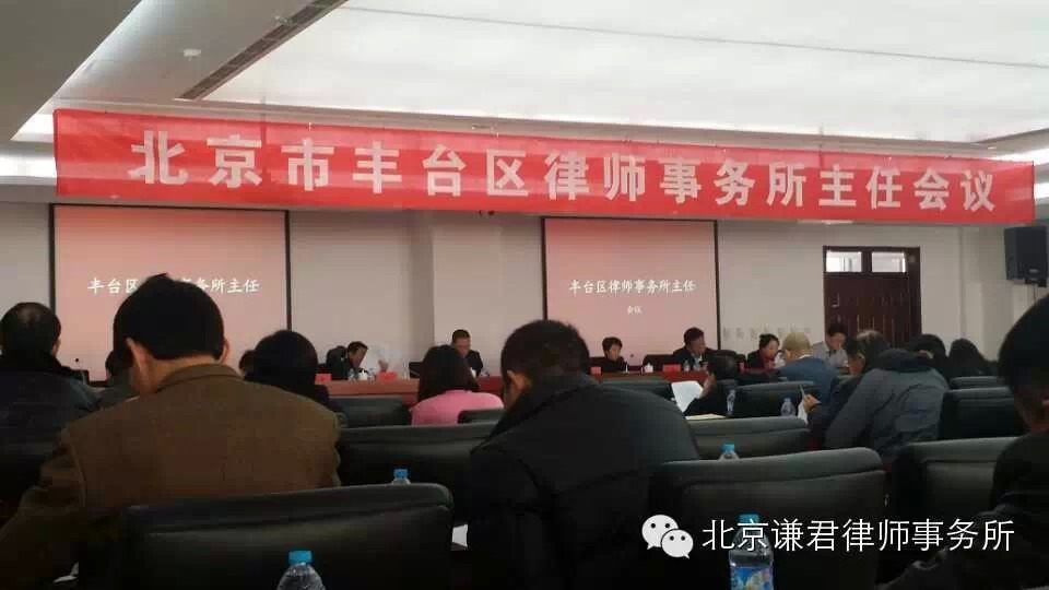 2014年12月14日,北京谦君律师事务所主任武丽君参加丰台司法局组织的律师事务所主任会议。武丽君主任同来自丰台区各大小律师事务所百余名律师,参加了本次会议。