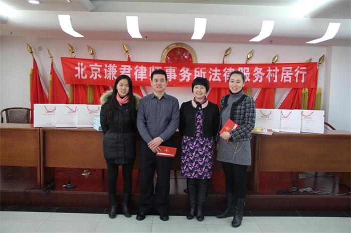 2014年12月24日上午,冬日阳光灿烂,晴空万里,北京谦君律师事务所主任武丽君律师走访卢沟桥乡郑常庄村,开展送法下乡、法律服务村居行公益服务活动。武丽君主任一行受到了郑常庄村委的热情接待。