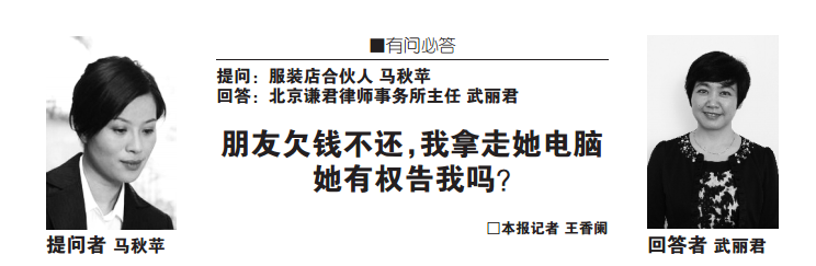 朋友欠钱不还,我拿走她电脑,她有权告我吗
