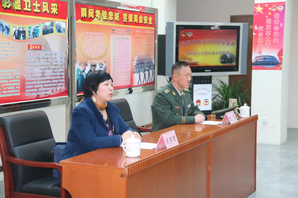 2016年3月11日,两会期间,武警官兵担负着重要的安保执勤任务,责任重大,使命神圣。北京谦君律师事务所主任武丽君律师工作之余,不忘法律拥军,百忙之中送法进武警部队两会驻地,为武警某支队官兵讲授法律知识解答咨询。