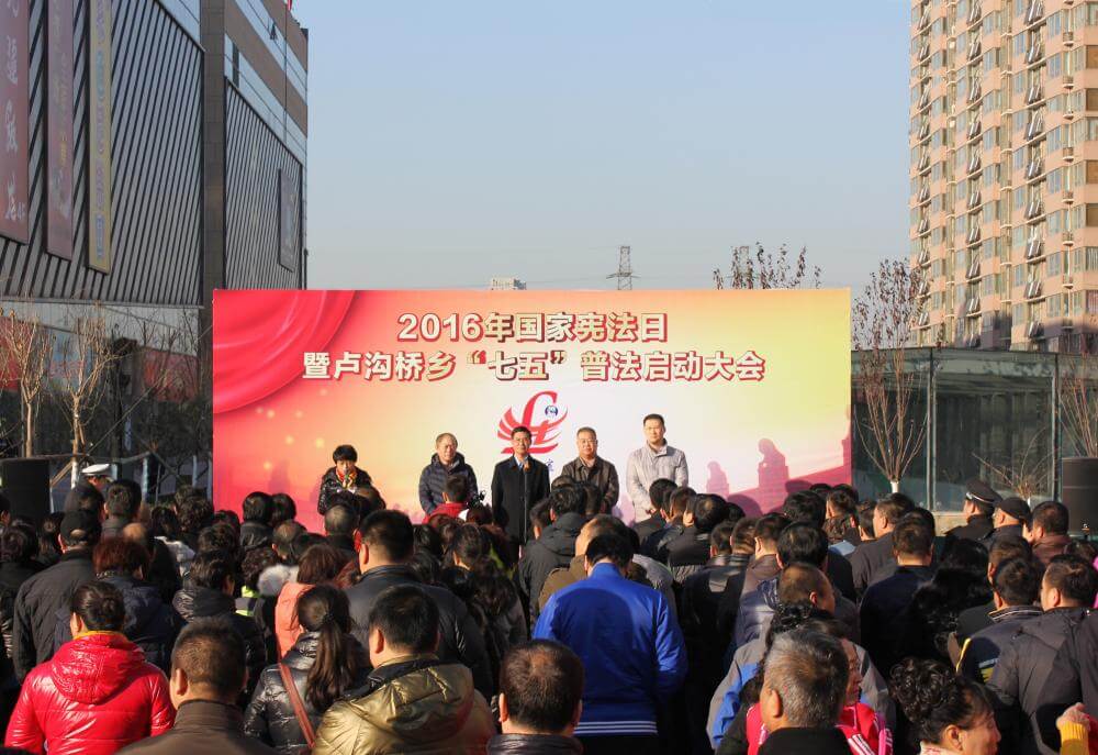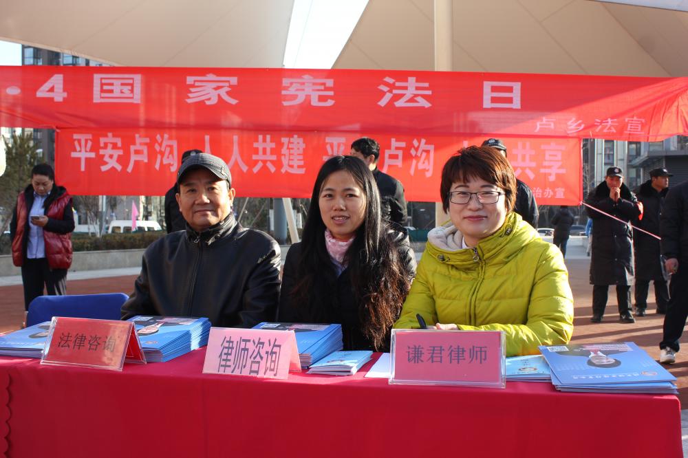 2016年12月2日,丰台区卢沟桥乡党委、乡政府在丰台区银座和谐广场举办了国家宪法日暨“七五”普法启动仪式活动。北京谦君律师事务所应卢沟桥乡司法所的邀请,选派何鎏律师等一行四人参加了启动仪式。
