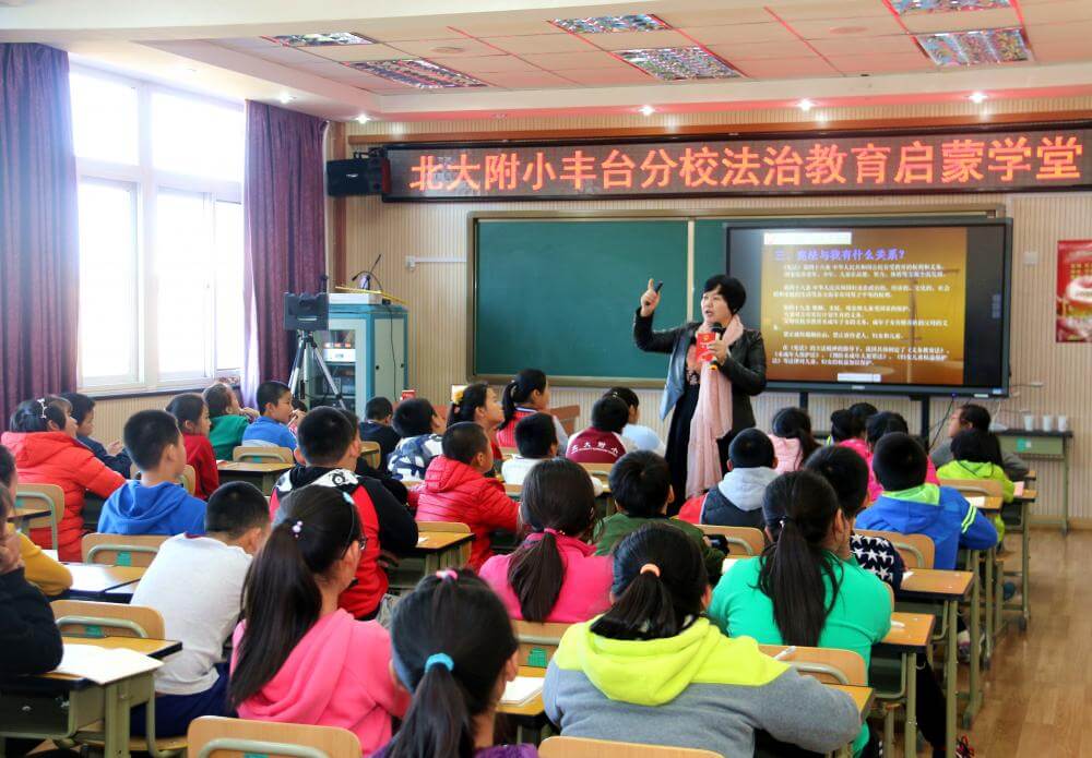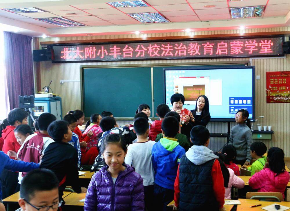 武丽君主任激动的表示:“孩子们对法律的渴望和敬畏之心,深深的打动着我们律师。作为律师和孩子们在一起是一种极大的快乐,让法律早日播撒在孩子们幼小的心田,是我们律师的最大心愿。为培养新一代尊法守纪的青少年,心中始终充满着希望和力量。中国的法治教育就应该从小学生抓起。只有这样,我国的未成年人犯罪几率才会极大下降,未成年受伤害的几率也会极大降低。我们律所可以与北大附小丰台分校建立共建关系,最大程度地做好学生们的法治教育,为师生及时提供法律帮助和法律援助,用法律武器保护校园净土不受污染,守护祖国的未来茁壮成长”!
