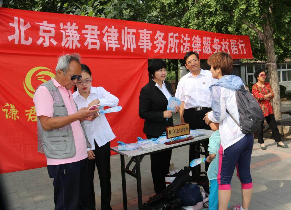 谦君律所一贯坚持“司法行政在身边 与法同行有谦君”的执业宗旨,积极配合并参与“七五”普法和首都功能疏解等活动,发挥律师优势,同时承担社会责任,奉行“宣传法律知识 弘扬法治精神”的法治理念,立足村(居),服务百姓,将“百姓法大姐”品牌服务送进千家万户。