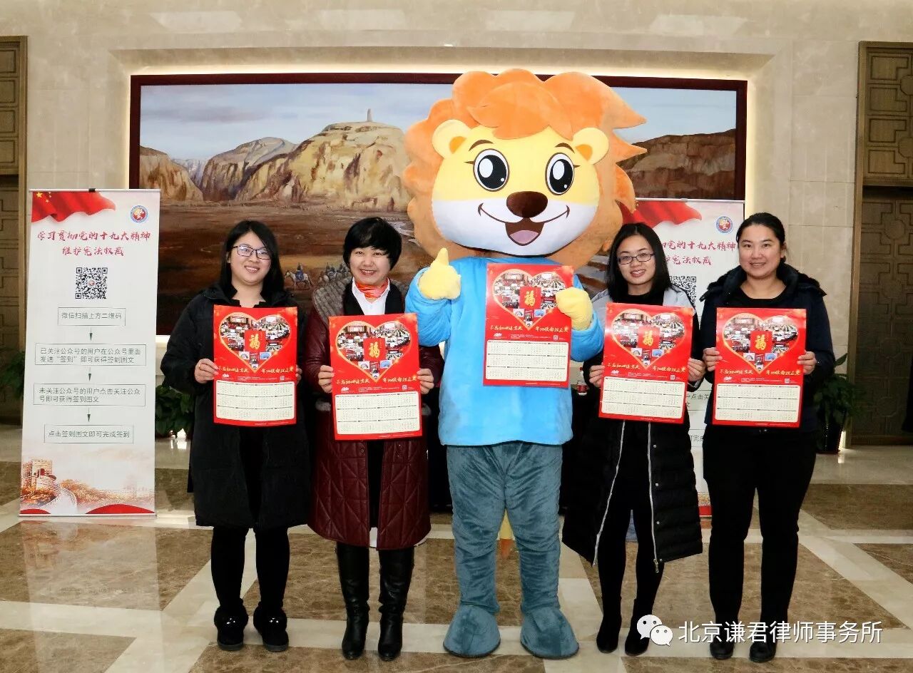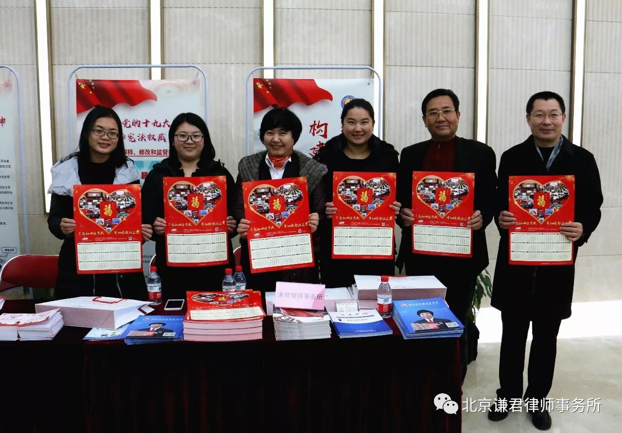 北京谦君律师事务所参会人员向参加活动领导和演职人员发放了《法惠卢沟》、《谦君一法》和《百姓生活法律指南》等法律知识手册;同时送上谦君律所精心设计印制的2018年精美年历,倍受与会者的钟爱。