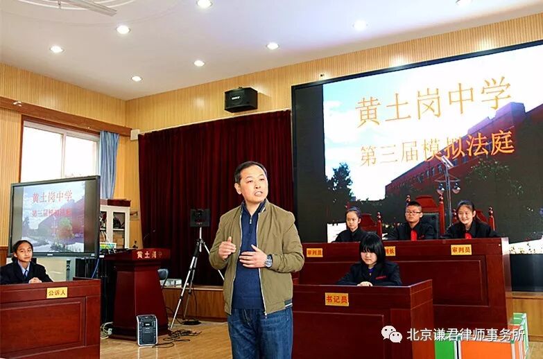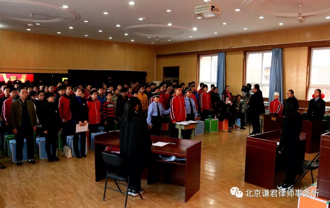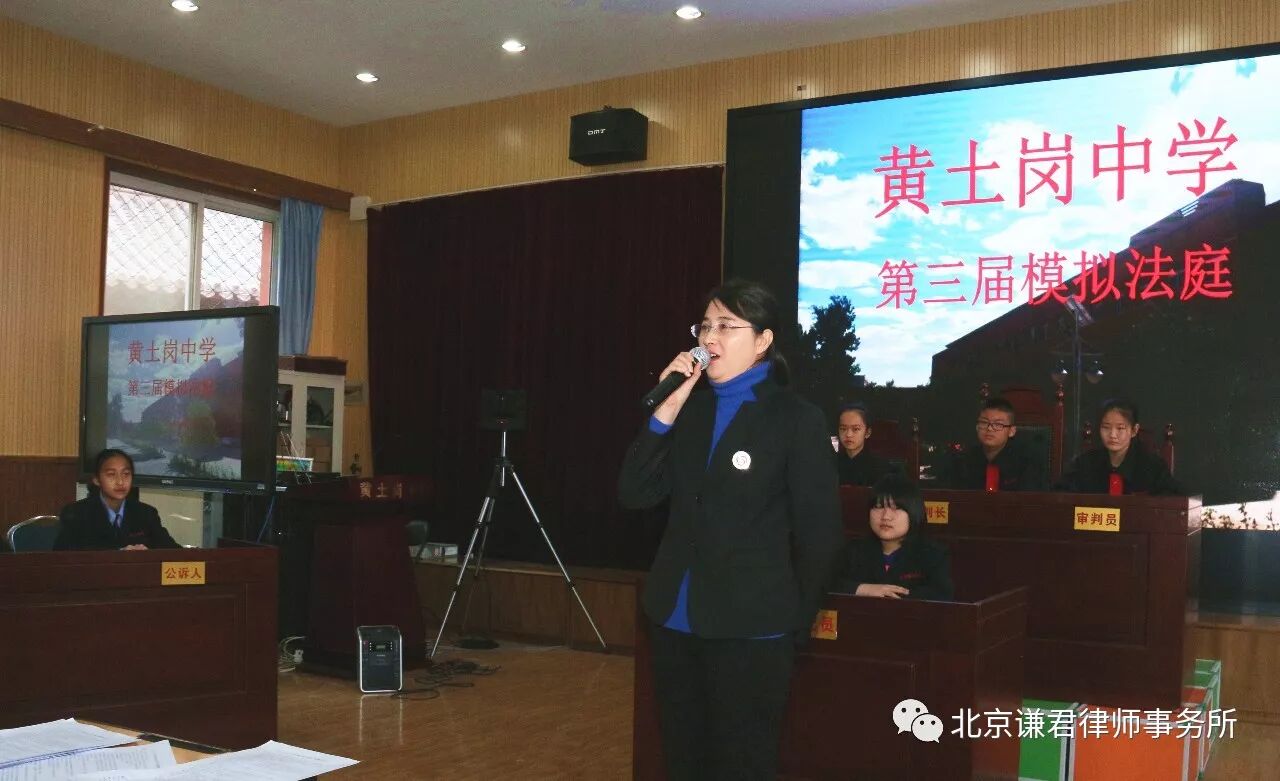 1月19日,北京谦君律师事务所吴彦明律师、朱嫄嫄律师等一行四人受黄土岗中学邀请,前往参加了该校组织开展的模拟法庭暨青少年学生法治宣传教育活动,亲身感受了学校对法治教育的重视,目睹了学生们学法、知法、守法和用法热情,有效助推了该校的法治宣传教育活动的深入开展。