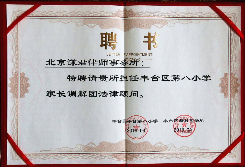 丰台八小成立家长调解团谦君律所被聘为法律顾