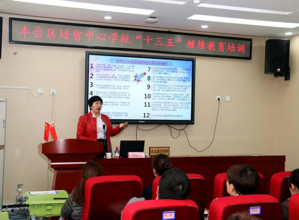 4月13日,北京谦君律师事务所武丽君主任一行冒着初春的纷纷细雨,走进丰台区培智中心学校,为该校全体教师们举行了一场以“校园安全事故责任”为主题的法律知识讲座,张小梅校长和全体教师们参加了此次讲座活动。