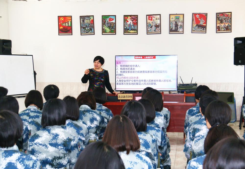 4月26日上午,北京谦君律师事务所武丽君主任一行受空军某部的邀请,再次前往该部队驻地为近百名女官兵们举行了题为“女官兵权益保障”的法律知识讲座。