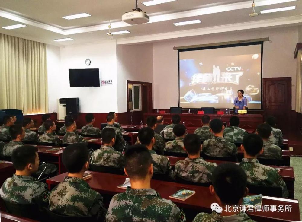 “八一”建军节之际,北京谦君律师事务所联合丰台区司法局法援科、法律援助中心、长辛店镇、南苑乡、花乡、云岗街道、长辛店街道、新村街道、南苑街道和丰台街道等司法所,走进军营,向官兵们致以节日问候,为官兵们送法送清凉,开展多场法律知识讲座和咨询,为部队官兵提供法律帮助,解决难题,并发放宣传品。央视《律师来了》栏目的记者和编导参与了本次送法进军营活动并进行了全程录制和采访。