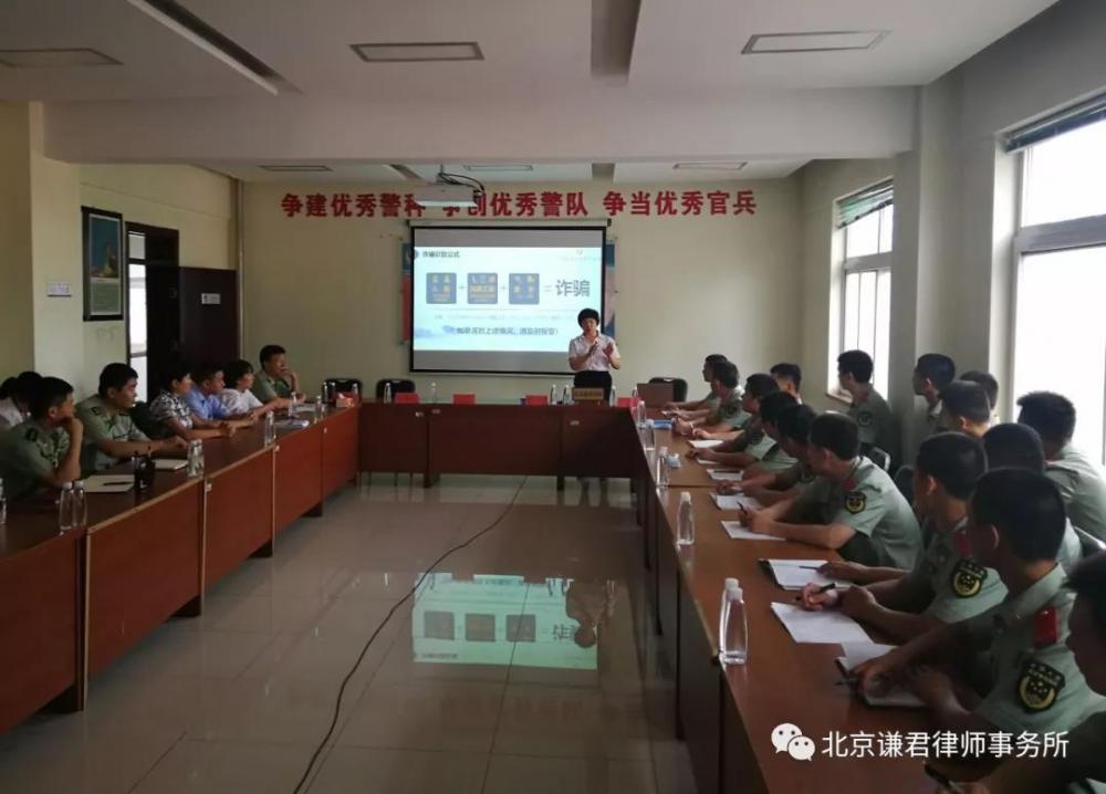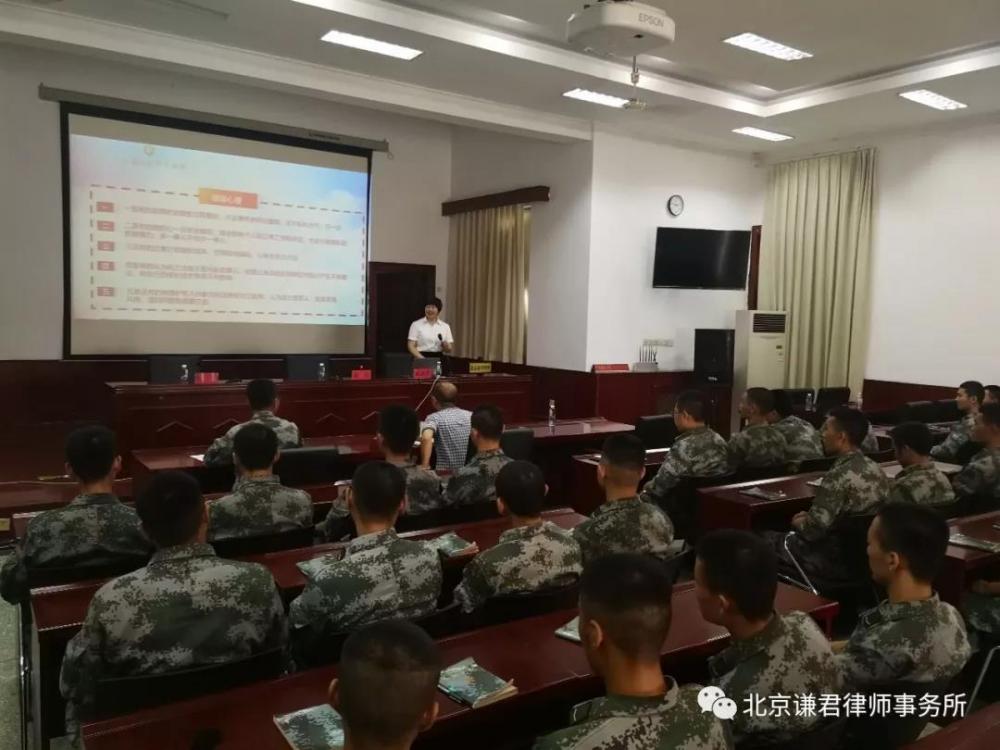 讲座主题有《军人军属维权法治讲座》、《防诈骗 拒赌博 用法律武器筑牢后方防线》、《用法律武器筑牢后方防线 做遵纪守法的合格军人》等,充分体现了谦君律师情系国防,拥军护军的大爱情怀。