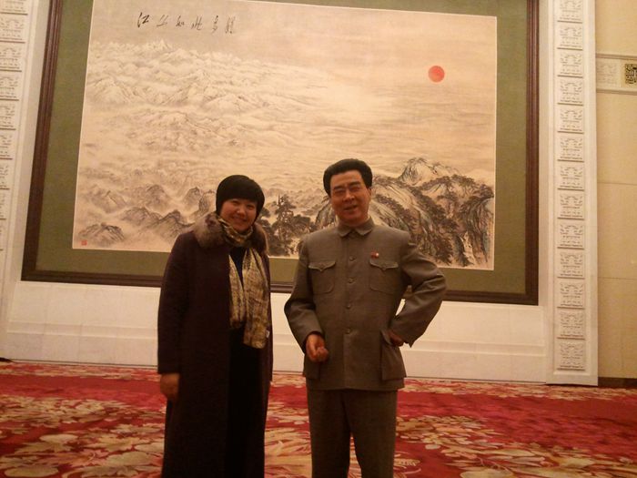 武丽君主任在人民大会堂参加活动,与周恩来特型演员合影留念
