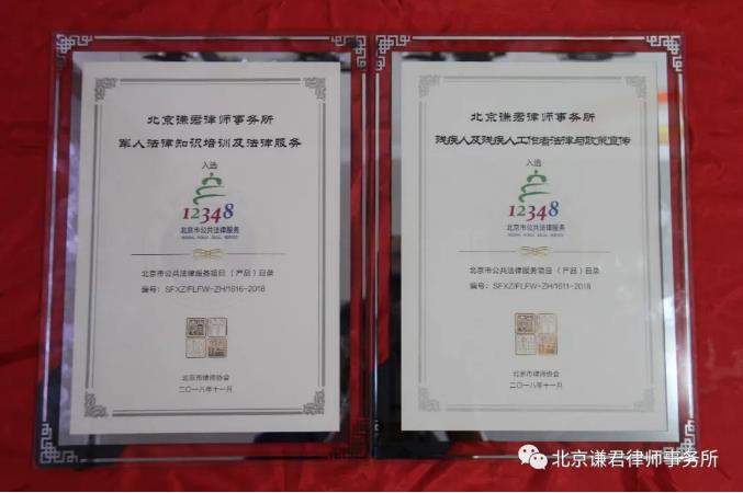 北京谦君律师事务所致力于为部队、为军人提供优质法律服务,结合军人特点和工作实际,积极研究涉军业务,努力探索为军人法律服务的模式,组织专业力量研发了《军人法律知识培训及法律服务》项目,通过规范高效的项目实施,让更多的军人从中受益,努力打造拥军优属法律服务品牌;《残疾人及残疾人工作者法律与政策宣传》项目,全面提高了残疾人及残疾人工作者法治观念和法律技能水平,为实现2020年小康路上残疾人一个都不能少的美好蓝图做出了积极贡献。