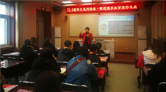 11月15日,北京谦君律师事务所武丽君主任受新村街道司法所和丰台区第八小学的邀请,在百忙之中为八小近800位家长和教师们举行了一堂《12.4宣传日系列讲座---家校携手共育美好未来》的法律知识讲座。部分家长代表在主会场聆听了武主任充满激情和亲情的精彩讲座,其余家长和老师分别在19个分会场通过视频直播进行了收看,新村街道司法所副所长曾昭烁和该校教育主任王红琳参加了此次讲座。