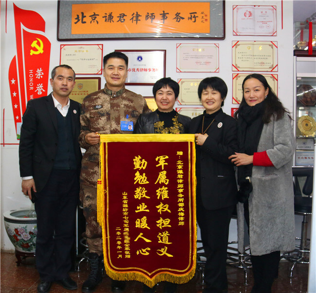 谦君律所始终坚持“情为国防所系,法为部队所用,利为官兵所谋”拥军优属宗旨,努力为加强国防现代化建设,让军人成为全社会尊崇的职业做出积极的贡献!