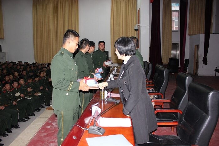 第二部分:北京律协、北京谦君律师事务所向退伍老兵赠送书籍和记事本,北京律师和武警部队首长及退伍老兵五百多人签名并合影留念。