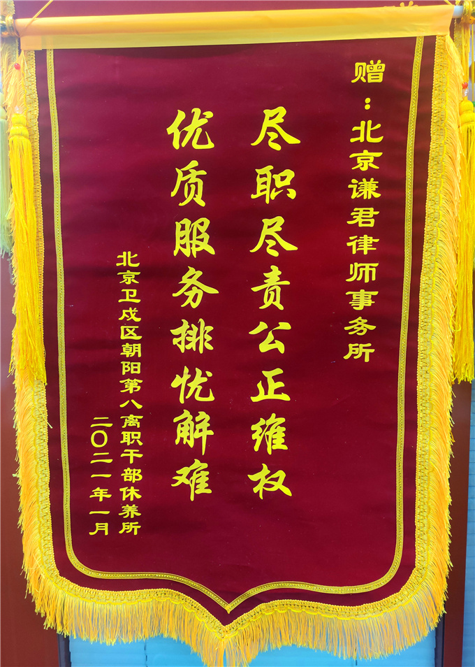 2021年月,收到三面锦旗既是沉甸甸的信任和鼓励,也是谦君律所前进的动力和源泉!也体现了谦君律师弘扬中华民族尊老爱幼的优良传统,关爱弱势群体的仁爱之心!