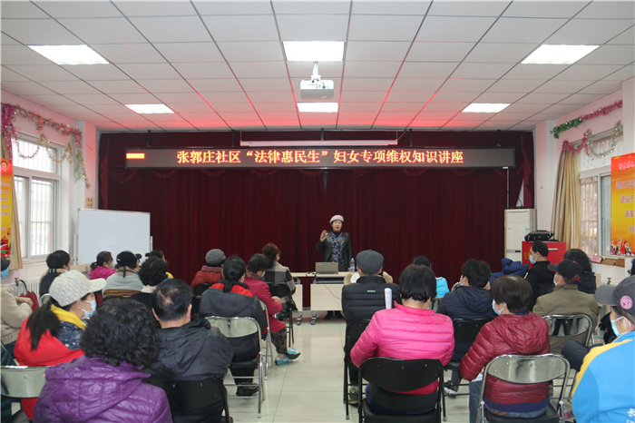 “三八”妇女节之际,北京谦君律师事务所武丽君主任率领律师团队,前往丰台区长辛店街道和长辛店镇的十多个村居,举行了主题为“妇女权益保障专题法律知识讲座”活动,村居妇女干部和妇女代表近500余人参加了讲座,发放《法典解说--继承编》《您若伸出求助之手 谦君为您排忧解愁》等宣传资料1000余份,接待涉法咨询20余人次。