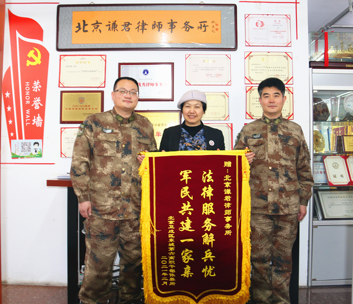 北京谦君律师事务所将不忘初心、继续用专业优质的法律服务保障好部队,急部队之所需,尽律所之所能,倾心、倾力、倾情为部队解难题、化纠纷、维权益。