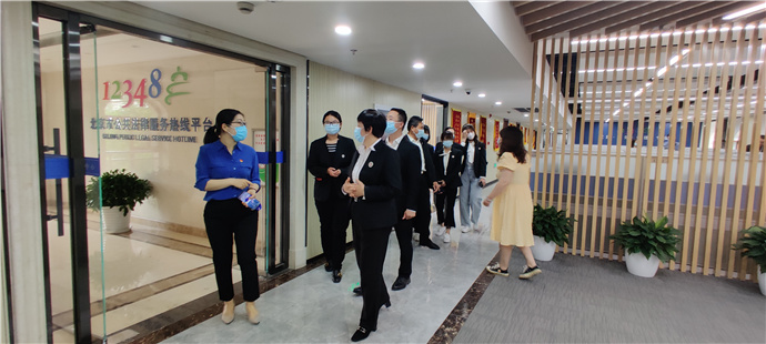 北京市公共法律服务中心目前是全国最大的服务中心,一楼公益律师接待室布置合理,环境温馨;二楼12348热线电话接听席位增至一百四十多位并配有先进的信息化数字化设备设施,最后参观“宪法宣传教育基地”。