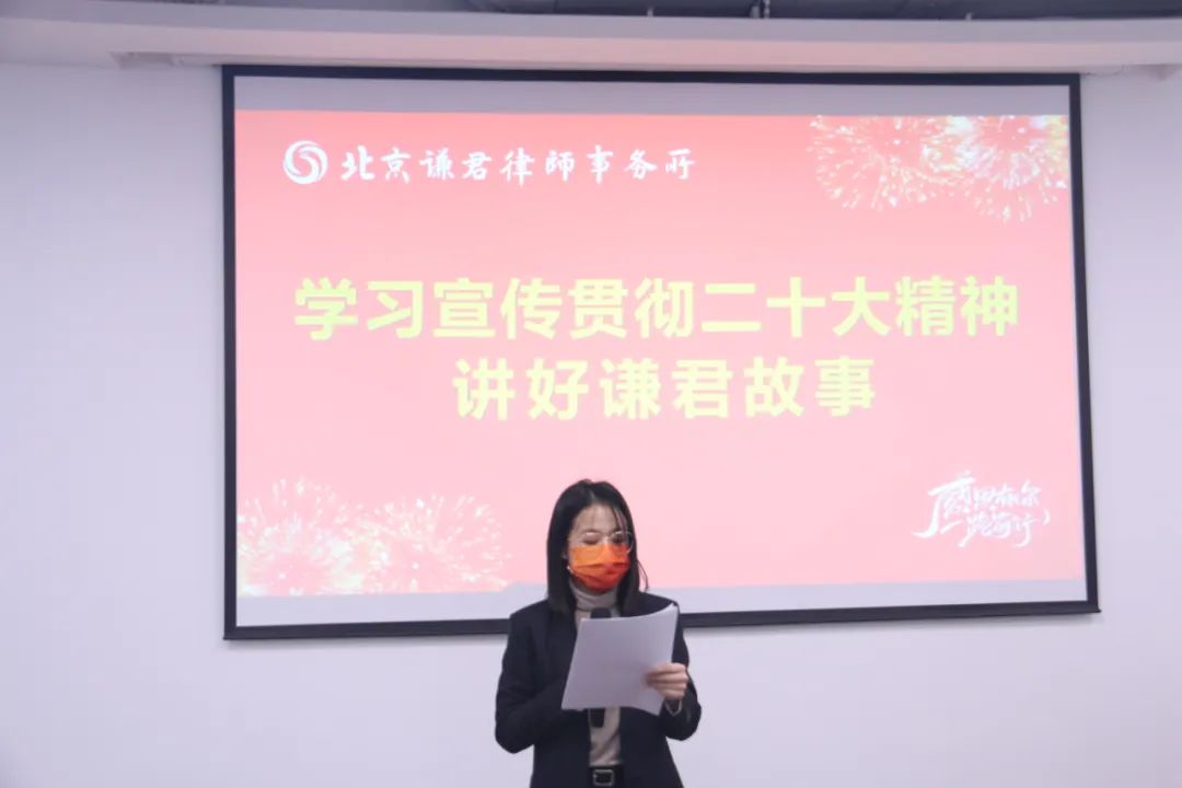 为学习宣传贯彻党的二十大精神,凝聚力量在法治轨道上建设社会主义现代化,推进全面依法治国,充分发挥律师作用,谦君律所以党建为引领,努力在新的一年开好头、起好步,于1月13日隆重举办“学习宣传贯彻二十大精神——讲好谦君故事”主题活动。