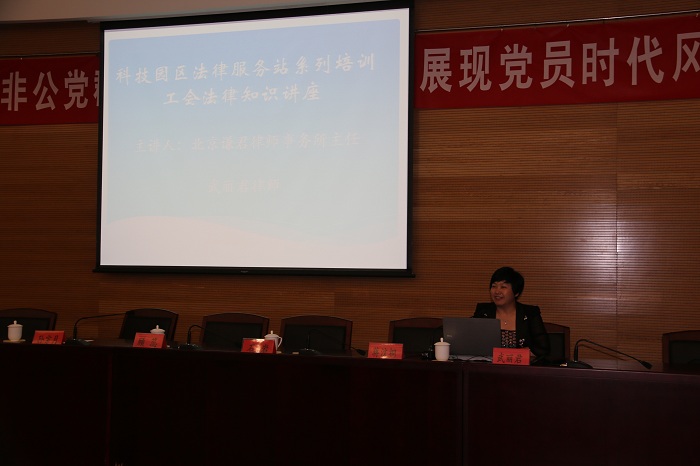 2014年7月 3日下午,大雨不经意间造访了炎热的首都,给污浊的空气注入了一抹清新,丰台科技园工会主席、各企业公司管理层、职工代表五十余人前来聆听北京谦君律师事务所主任武丽君关于《建工会对企业作用的法律知识讲座》。